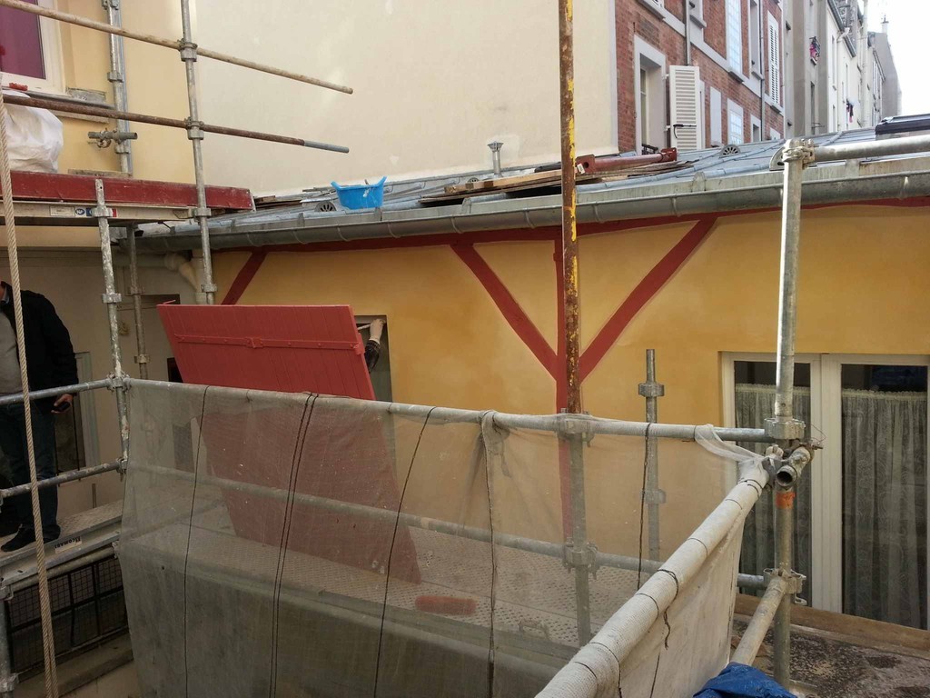 Ravalement façade avec reprise de pans de bois structurels